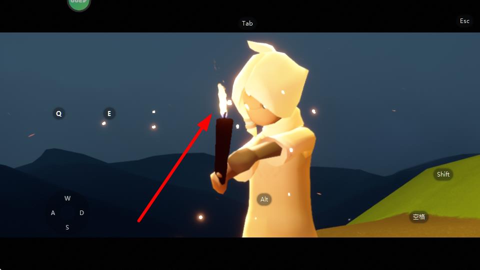 1、進入游戲后,角色手持蠟燭,這是點火基礎道具,可通過左側(cè)按鍵控制角色移動,前往需點火的目標位置。