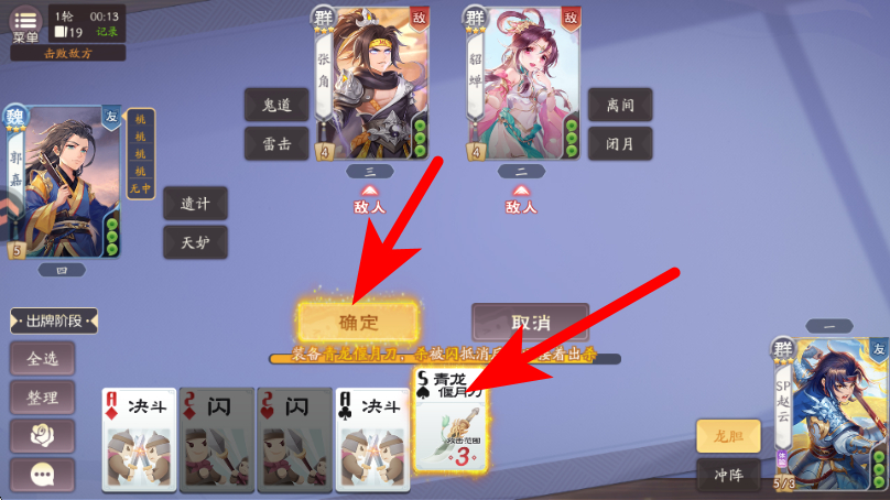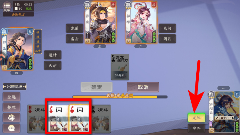 2、裝備武器后,若觸發(fā)技能如龍膽,可選擇閃牌等進(jìn)行操作。
