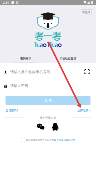 1、進入到登錄頁面時,如果沒有賬號可以點擊下方立即注冊按鈕,進行注冊。
