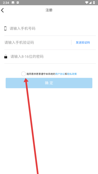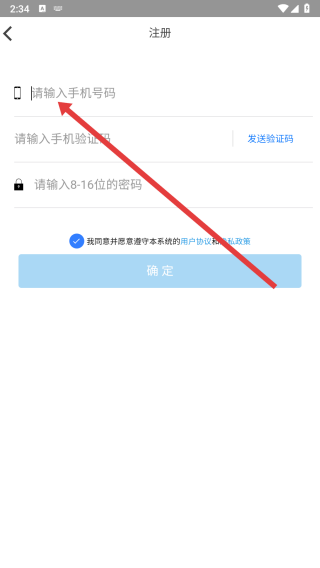 3、在勾選好同意按鈕后,點擊輸入框填寫手機號碼以便獲取驗證碼進行注冊。