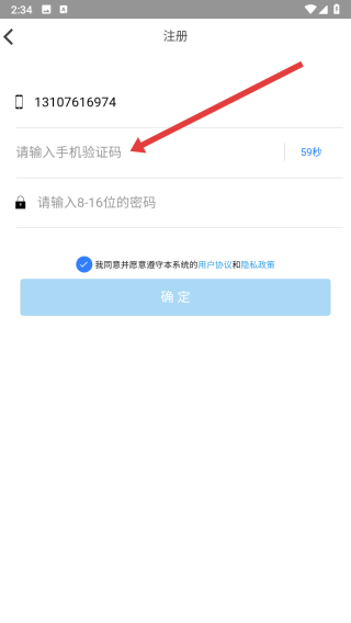 4、在獲取到驗證碼后,點擊輸入框依次填寫驗證碼和密碼后即可完成注冊操作。