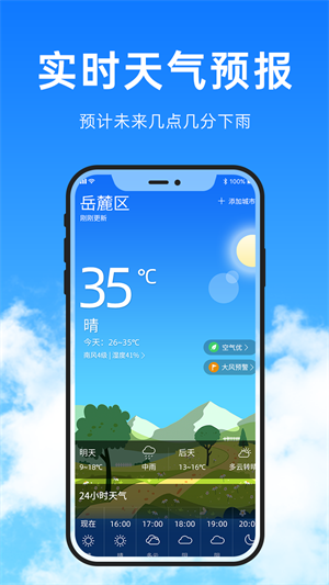 - 未來二十四小時精準預報,每個小時段的天氣全都有,隨時打開手機就能輕松查看;