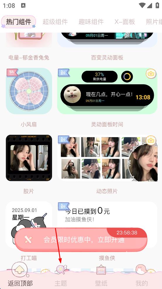 5、【熱門(mén)小組件推薦】 電量郁金香兔兔、X面板、動(dòng)態(tài)組件、照片墻卡框、心情日志、打工喵、搬磚日歷、兔與熊紀(jì)念日、戀愛(ài)紀(jì)念日、月兔倒數(shù)日、月桂兔時(shí)鐘、太空人時(shí)鐘、動(dòng)物森林天氣;