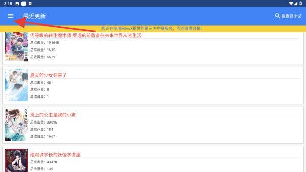 1、點(diǎn)擊APP左上角的三條橫線菜單按鈕,展開(kāi)側(cè)邊欄。