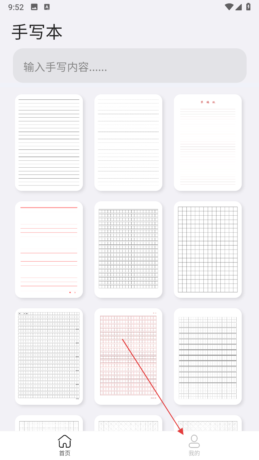 1、打開手寫模擬器應(yīng)用,點(diǎn)擊下方我的進(jìn)入。