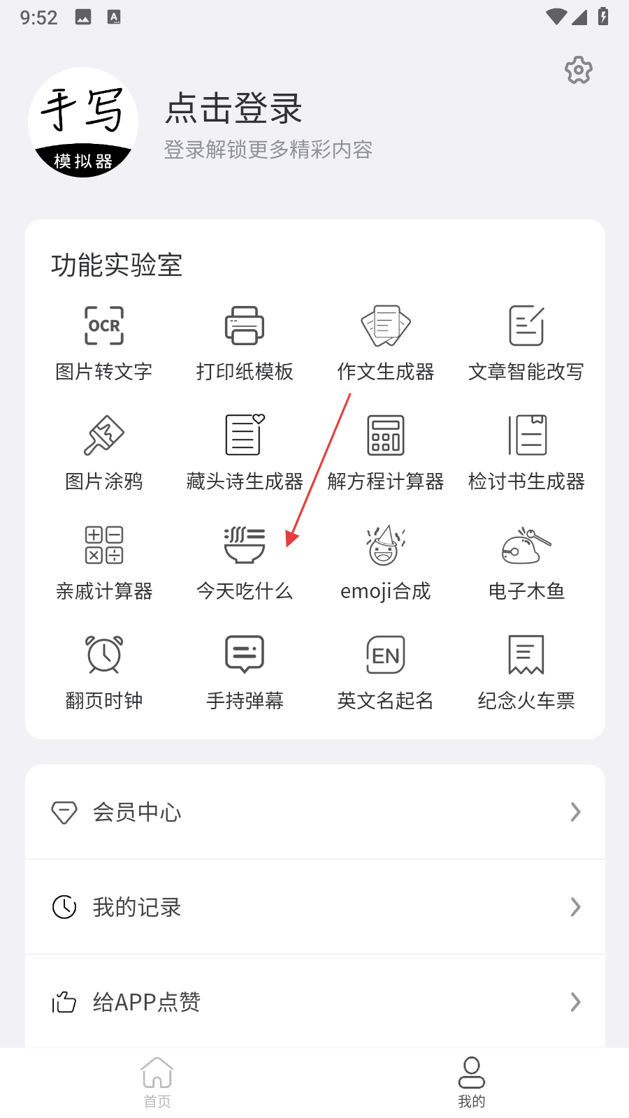 2、在功能實(shí)驗(yàn)室里,找到今天吃什么功能入口并點(diǎn)擊。