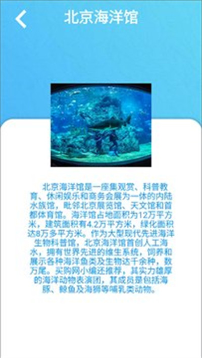 3、介紹的內(nèi)容非常詳細(xì),用戶在進(jìn)行查詢之后,可以得到非常詳細(xì)的介紹,比如某個(gè)海洋館的位置、占地面積等等。