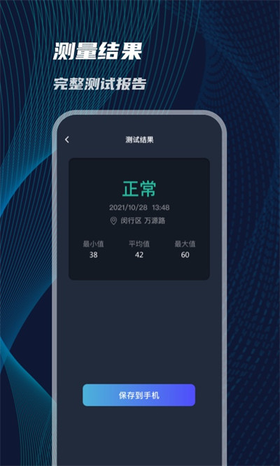 2、使用非常便捷,直接打開就能夠使用,可以立即得到噪音分貝的測量結果,是正常還是不正常;
