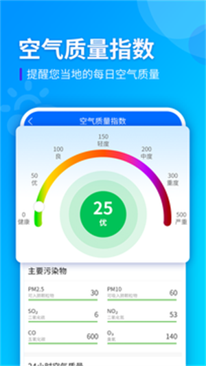 - 提供未來48小時和15天的空氣質(zhì)量預(yù)報,實時更新空氣質(zhì)量、PM2.5等指標(biāo)預(yù)報;