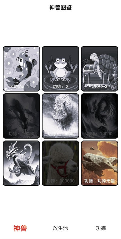 -每天可放生普通動(dòng)物,鯉魚、青蛙、烏龜,也可以從另一個(gè)世界召喚神獸來釋放。