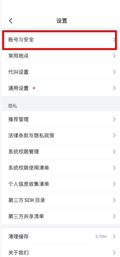 2、在設(shè)置頁面中找到,并點擊賬號與安全選項。