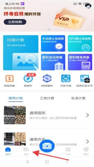 1、打開掃描計數(shù)王app,在首頁內(nèi)點擊下方導(dǎo)航欄中文件的圖標。