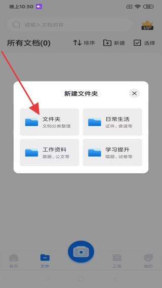 2、進入到文件的頁面內(nèi),點擊所有文檔右側(cè)新建的功能按鈕。