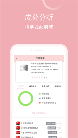 - 拒絕廣告、導(dǎo)購(gòu)?fù)扑]利用大數(shù)據(jù)收集海量化妝品多維度信息,幫助你科學(xué)、科學(xué)地護(hù)膚;
