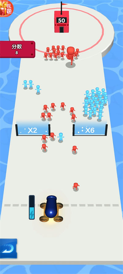3、要注意開炮的角度和方向,游戲中玩家己方和對手的小人隊伍會混雜在一起,玩家需要注意開炮要對準敵人,不能打到己方的小人。