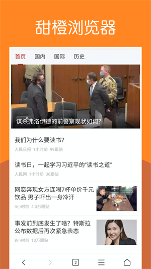 甜橙瀏覽器為用戶帶來了很多優(yōu)質和有趣的資訊和信息,極簡簡潔的界面交互,無新聞、無推送、無后臺服務,智能無圖模式可以有效幫助用戶節(jié)省流量。