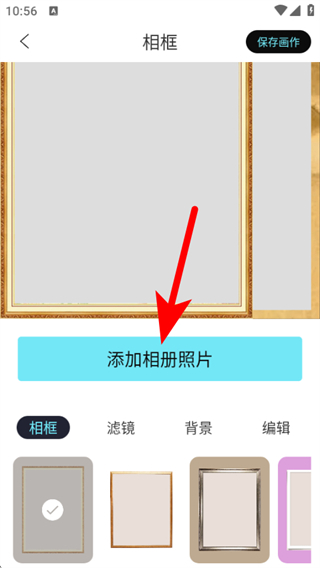 2、在相框頁(yè)面,點(diǎn)擊添加相冊(cè)照片按鈕,選擇并添加照片。