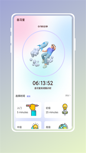 自習吧是一款專注學習的軟件,一鍵開啟專注時間,讓大家可以更加專注的學習、工作等,每個小伙伴可以在線自由使用,根據(jù)個人需求在線自習時間設計等等,簡單的操作帶來便捷設置,隨時選擇等級開啟專注時間倒計時。