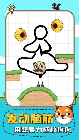 一款帶有線條繪制游戲的益智游戲,玩家通過畫線來阻止蜜蜂傷害狗,因為在游戲中你要幫助可憐的狗,不要被蜜蜂蜇,但有些關(guān)卡真的很有挑戰(zhàn)性,最好跳出框框思考,劍拿偏偏,別讓狗狗的美色失色,保護好狗狗的腦袋。