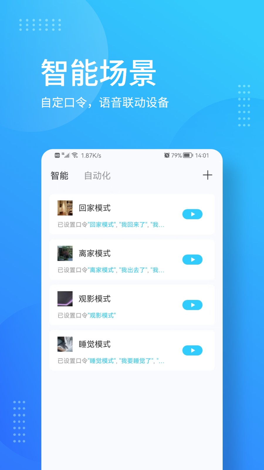 2、平臺擁有私人定制模式,幫助大家更好的享受智能的居家體驗;