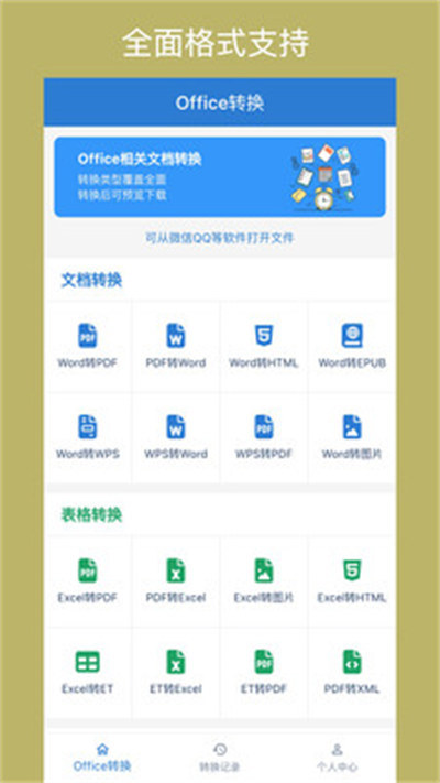 Office轉(zhuǎn)換器app是一款非常好用的文檔格式轉(zhuǎn)換軟件,在日常工作和學(xué)習(xí)中總是會(huì)遇到很多文件,如果想要對(duì)這些軟件的格式進(jìn)行更改,有時(shí)候會(huì)有些困難,此軟件就解決了各位用戶的問題,能夠在手機(jī)上處理各種軟件的格式,不管是文字,還是表格、演示文稿都能處理。