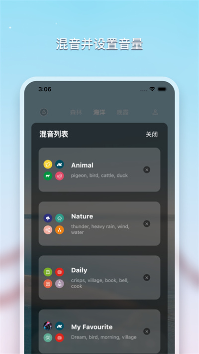 2、擁有非常豐富的白噪音資源給予用戶選擇,滿足不同用戶對(duì)于白噪音的選擇;