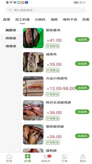 - 用戶可以在該軟件上選擇各種特色產(chǎn)品,包括一些原材料和各種食材等各種商品;