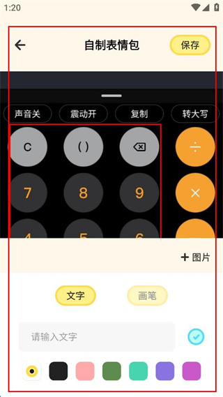 4、可添加文字、使用畫筆等進(jìn)行編輯,完成后點擊保存,完成表情包制作。