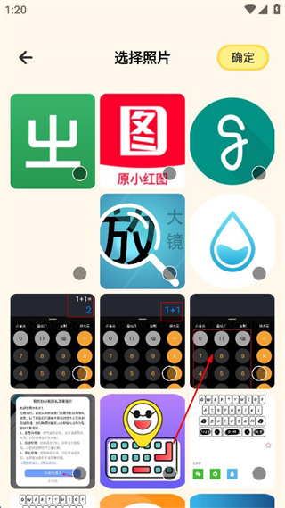 3、在選擇照片界面,選擇想要的照片后點擊確定,進(jìn)入自制表情包編輯界面。