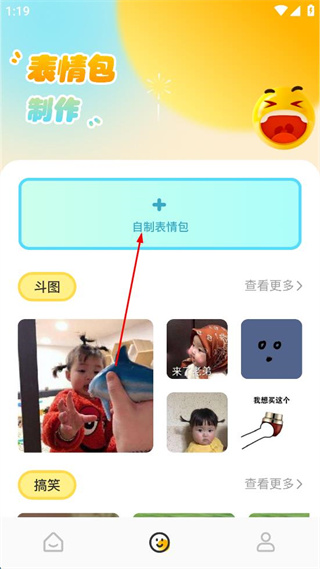 1、點擊底部表情圖標(biāo),進(jìn)入表情包制作界面。