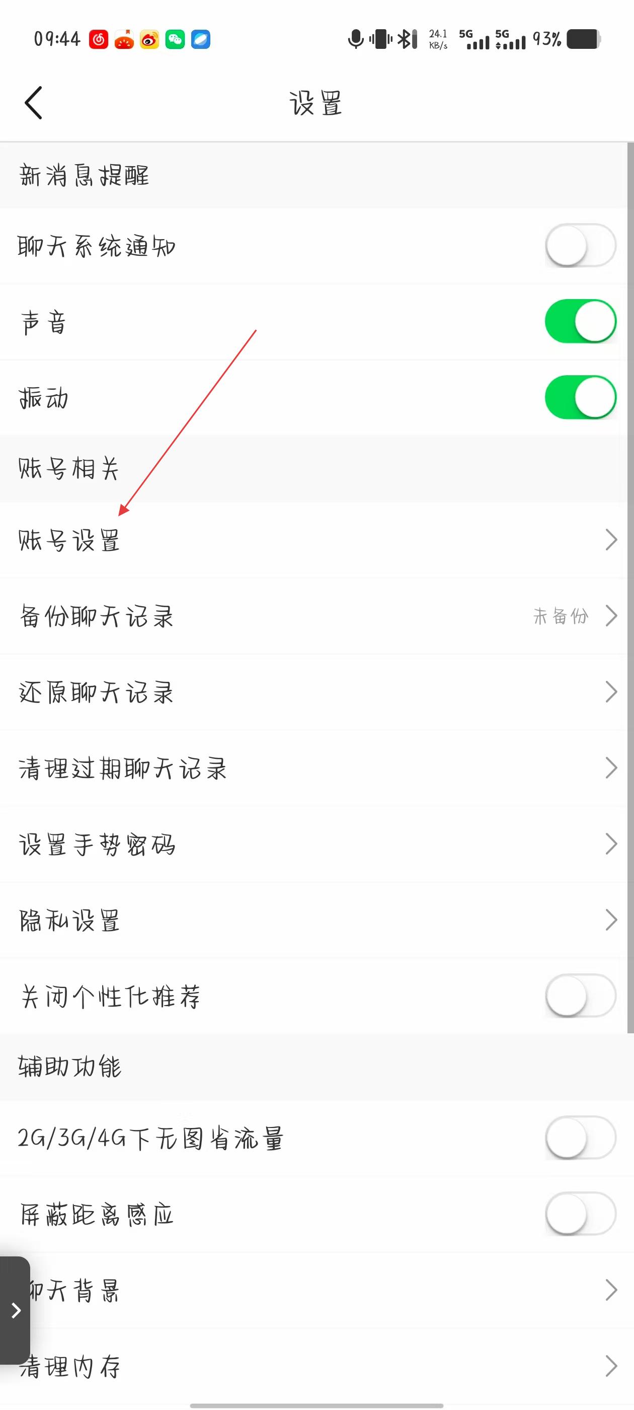 2、在設(shè)置界面中,點擊賬號設(shè)置選項,進入賬號設(shè)置頁面。