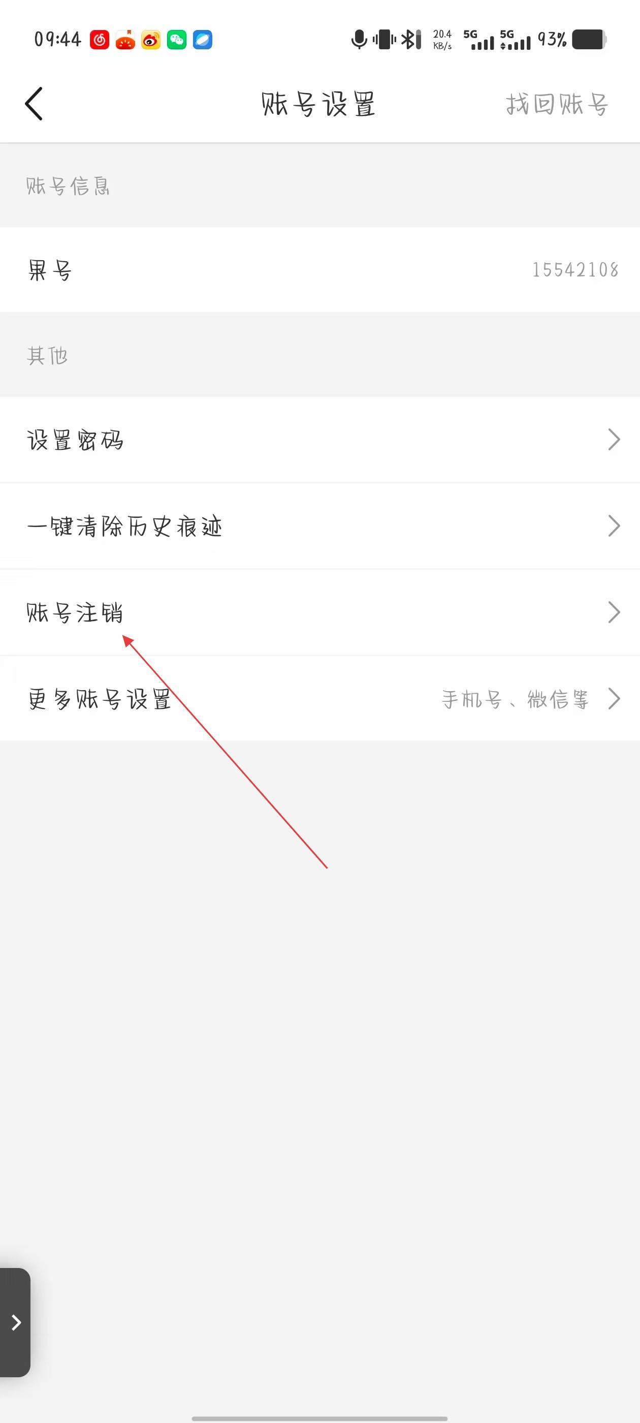 3、在賬號設(shè)置頁面中,點擊賬號注銷選項,進入賬號與安全頁面。