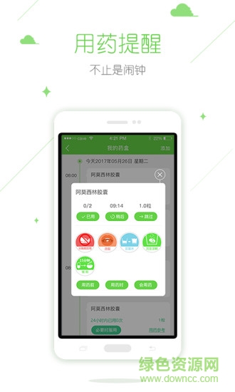 可同時設(shè)置多種藥物,將每天用藥按時間理順,準(zhǔn)時提醒;