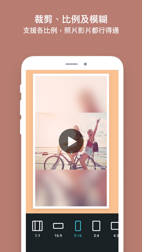 * 7個模式:拼圖、美化、自拍相機、自由拼圖、視頻幻燈片、長條圖