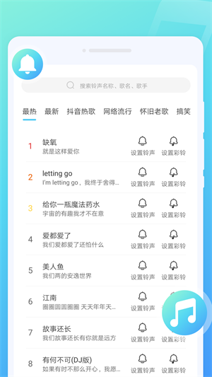 1、一鍵設(shè)置,更新鈴聲每天實時獲取資源,各種鈴聲可供選擇;
