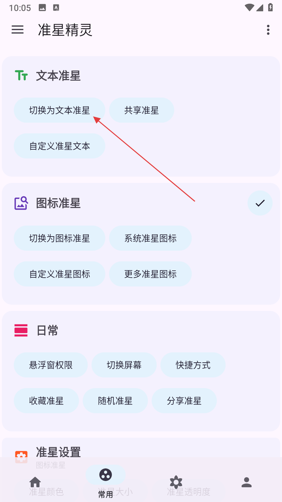 2、在準(zhǔn)星模塊中,點(diǎn)擊想要切換的準(zhǔn)心模式,比如切換為文本準(zhǔn)星按鈕。
