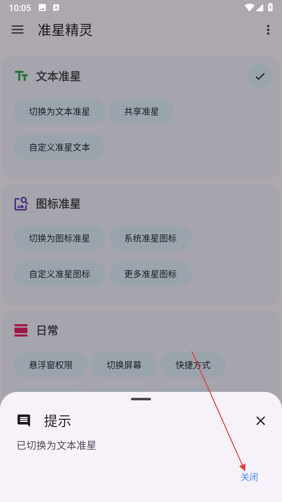 3、彈出已切換為文本準(zhǔn)星提示框,點(diǎn)擊提示框右下角關(guān)閉按鈕,完成準(zhǔn)心模式切換。