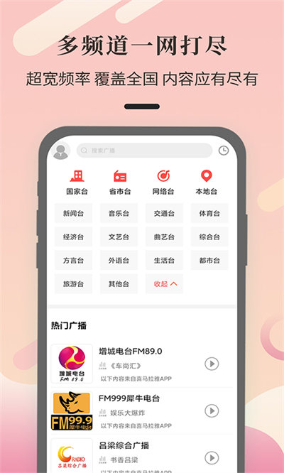1、涵蓋 新聞、財(cái)經(jīng)、生活、交通、綜藝、音樂(lè)、故事、民族等各種分類(lèi);