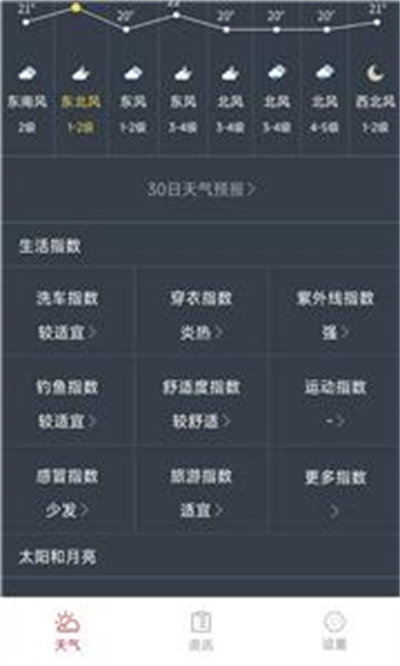 上下滑動(dòng)的操作方式,可更快速更便捷的查看天氣趨勢(shì)、風(fēng)速、生活指數(shù)等信息;
