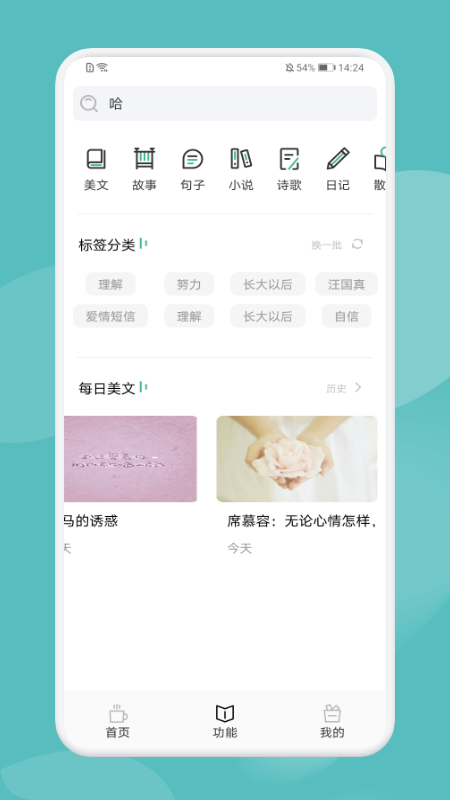 1、提供經(jīng)典文章還有美文、句子、小說、故事等精選分類,還有很多經(jīng)典語錄等你來發(fā)現(xiàn);