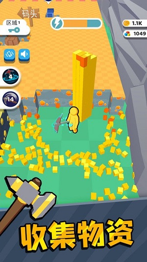 一款簡單解壓的游戲,解鎖越來越多的高級挖礦工具,提升你的挖礦效率,其中蘊藏著豐富的資源,需要你不斷的探索和挖掘,你找到的寶藏越多。