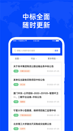 - 設(shè)置了豐富的招標(biāo)信息,招標(biāo)信息每天都會(huì)更新,還可以根據(jù)內(nèi)容快速做出相應(yīng)的措施。
