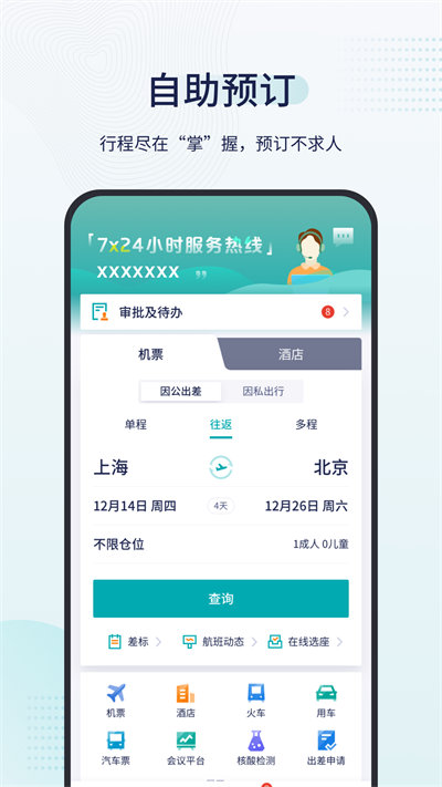 致行商旅app是一款非常專業(yè)的面向企業(yè)、單位等提供商務(wù)出行服務(wù)的軟件,能夠服務(wù)用戶進行差旅自主預(yù)定,在出差時,自由的對要去的地方的機票、酒店、火車票等進行購買預(yù)定,功能非常強大,還能為用戶提供各種公務(wù)租車、門票預(yù)訂等服務(wù),讓每一個人能夠輕松安排自己的差旅時光。