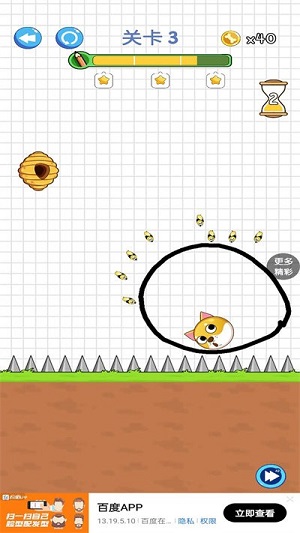2、通過繪畫保護狗的頭部,只要它沒有被蜜蜂蜇到成功完成關卡;
