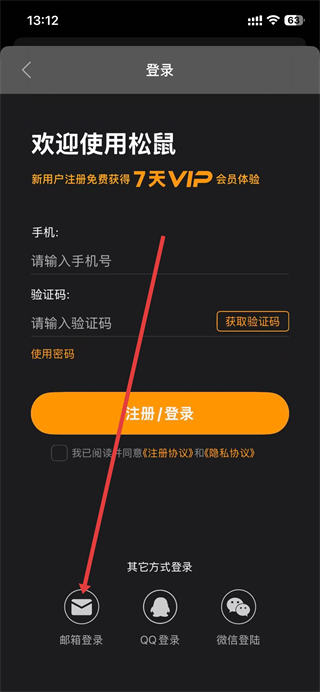 3、進入登錄頁面后,找到并點擊下方郵箱登錄。