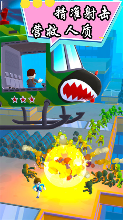 2、有趣的游戲模式,玩家需要擊殺敵人,幫助幸存者成功到達(dá)直升飛機(jī)這邊,過程非常的驚險(xiǎn)刺激;