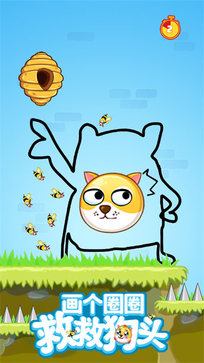 1、仔細(xì)觀察周圍的情況,玩家需要讓線條包住狗頭,從而保證狗頭的安全,讓它不被蜜蜂蟄到;