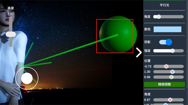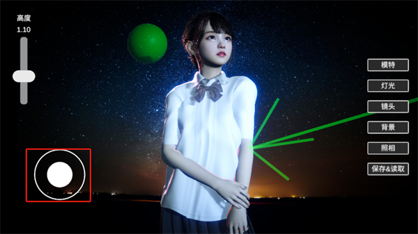 2、玩家通過移動可以看見屏幕的后方有過一個(gè)綠色的星球,玩家點(diǎn)擊可以進(jìn)行光線的調(diào)整;
