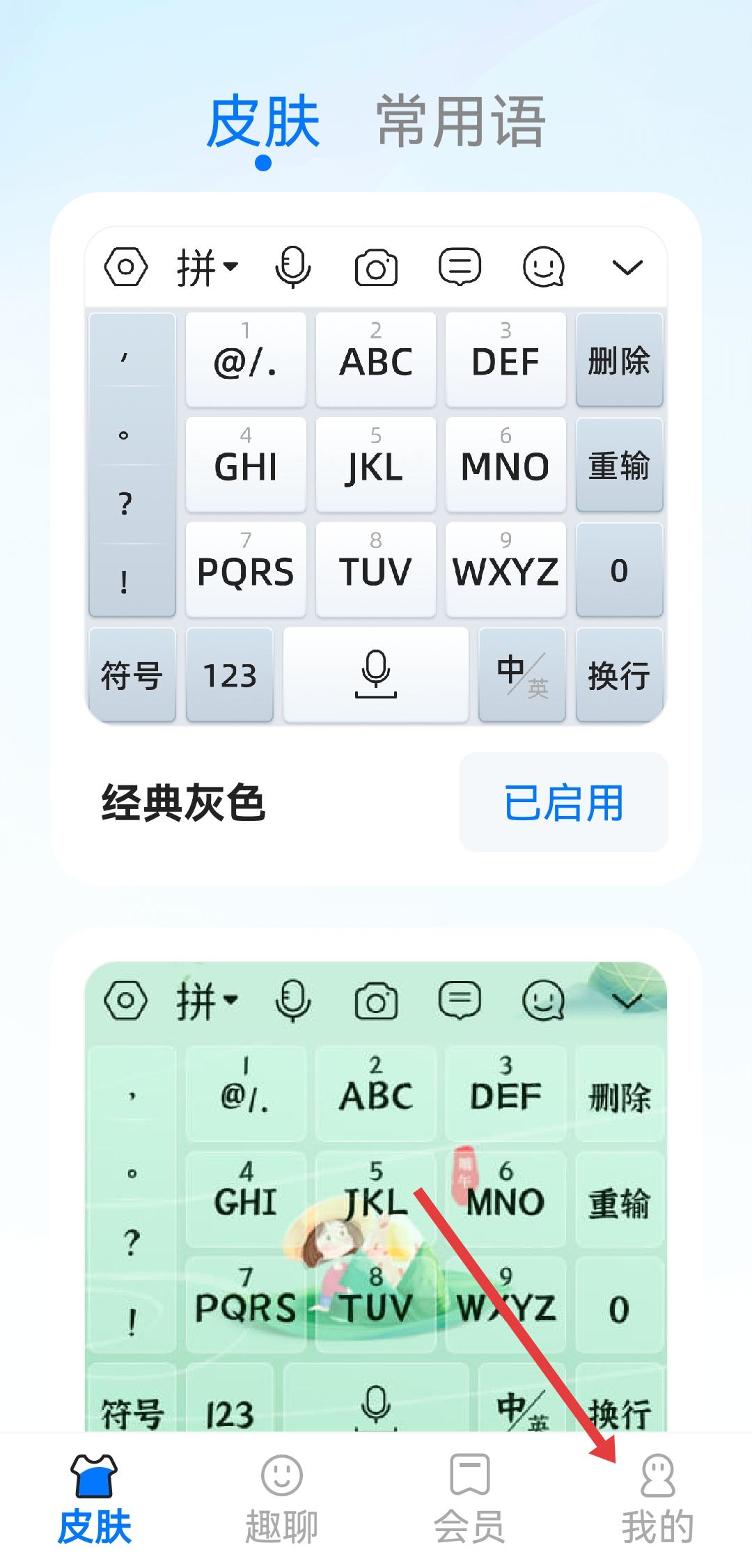 1、在有聲輸入法皮膚頁面,點(diǎn)擊右下角我的,進(jìn)入個人中心界面。