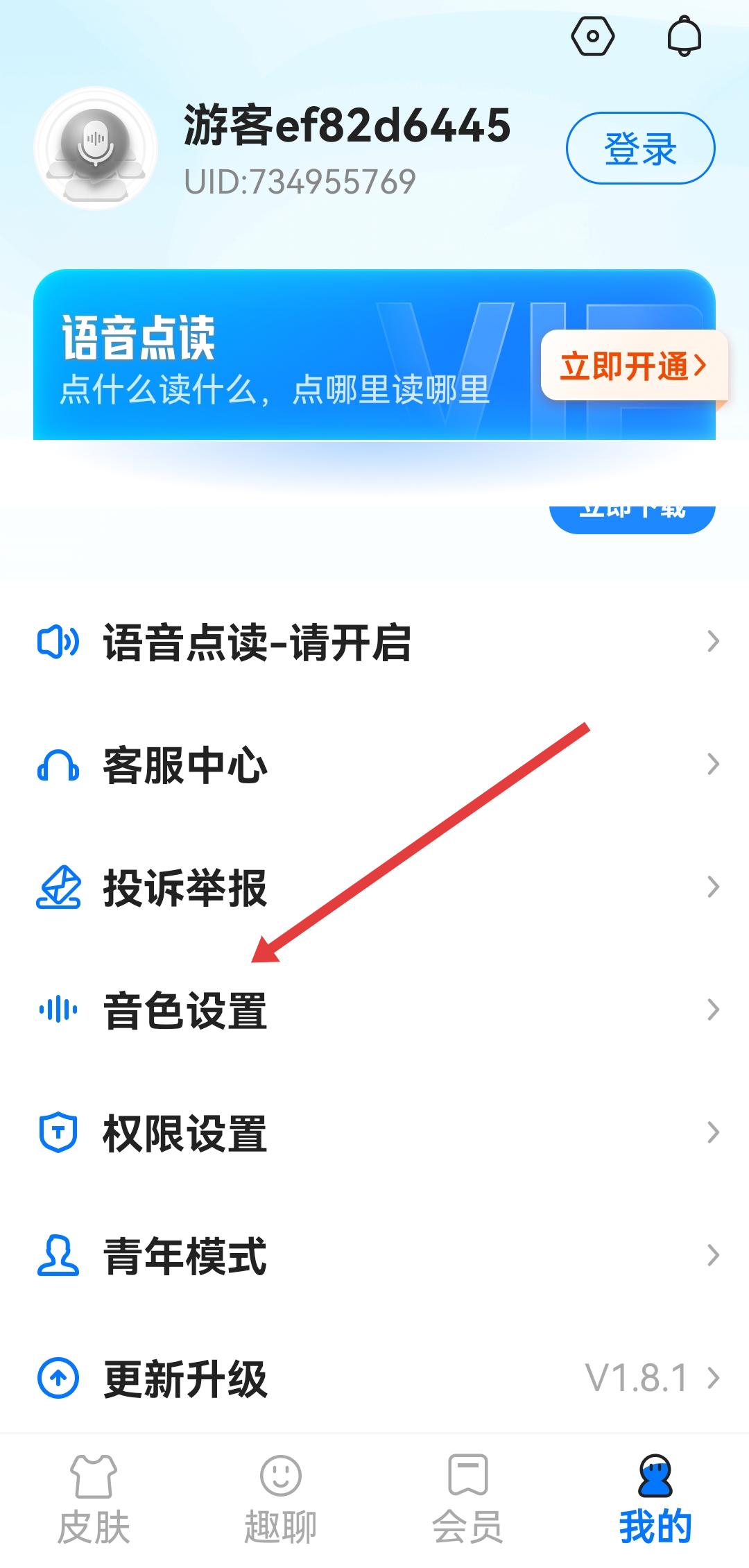 2、在我的頁面,需要點(diǎn)擊音色設(shè)置的選項(xiàng),進(jìn)入音色的設(shè)置頁。